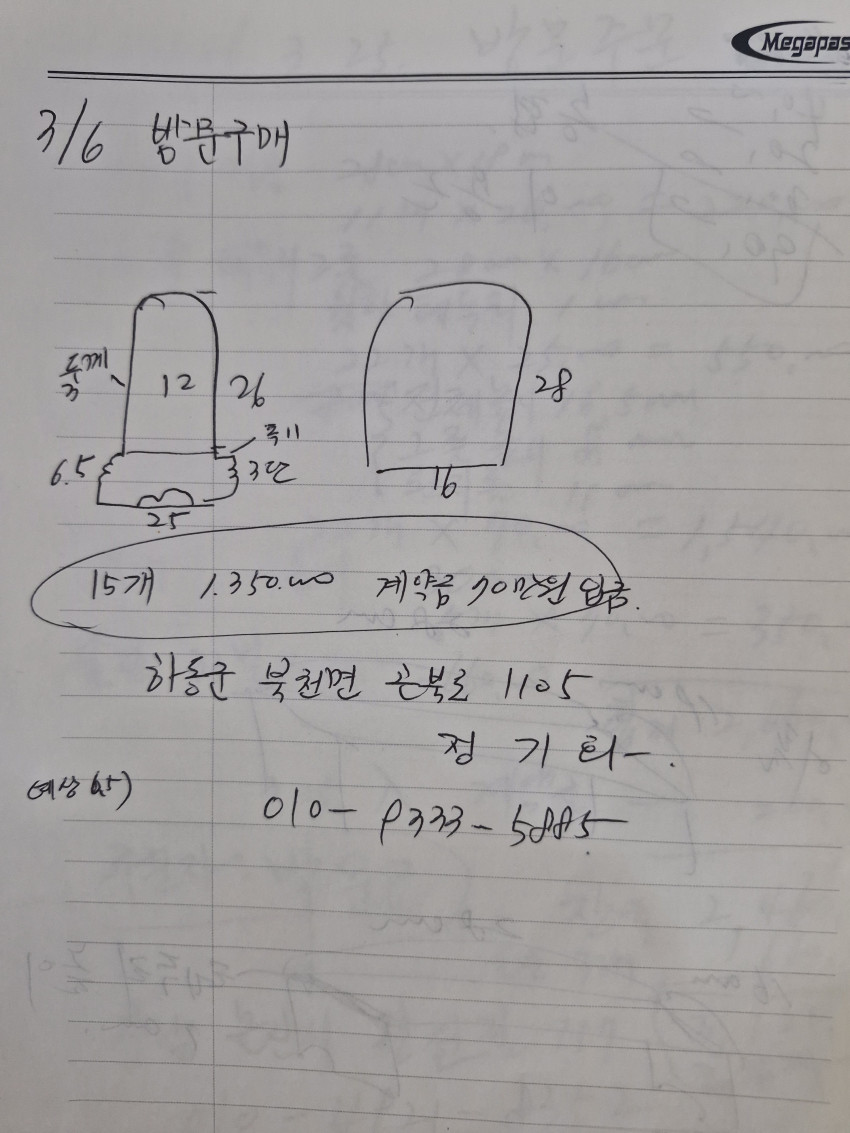 2026년 3월 6일 하동 정기화 지방 주문제작. 주문확인 0 67 0 2026-04-16 09:56:57 주문 제작 의뢰 날짜: 방문일 2026년 3월 6일 주문 제품: 지방 본체 및 뚜껑 15 세트 주문자 이름: 정기화 연락처: 010-9333-5885 주소: 경남 하동군 곤북로 1105 0